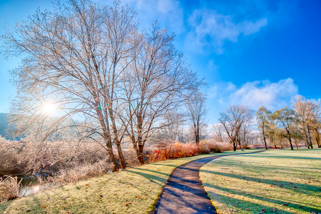 Frost covered New England walking path