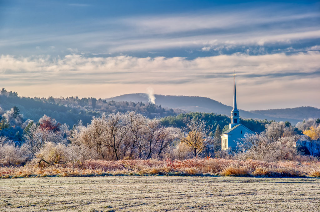New England church in the fall