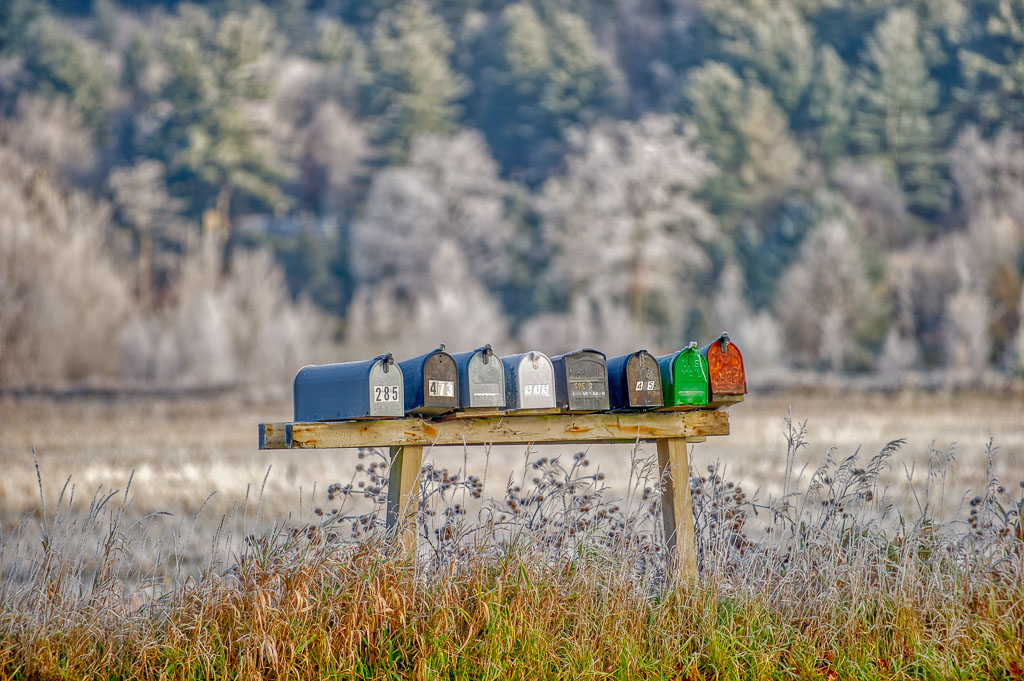 Frost covered rural mailboxes